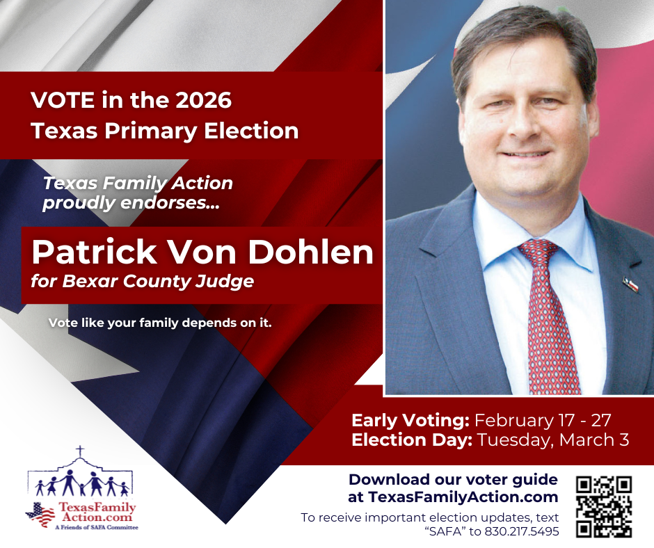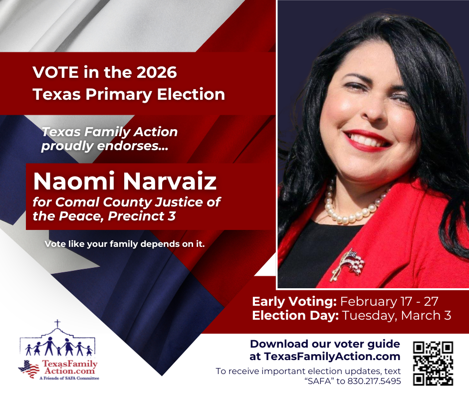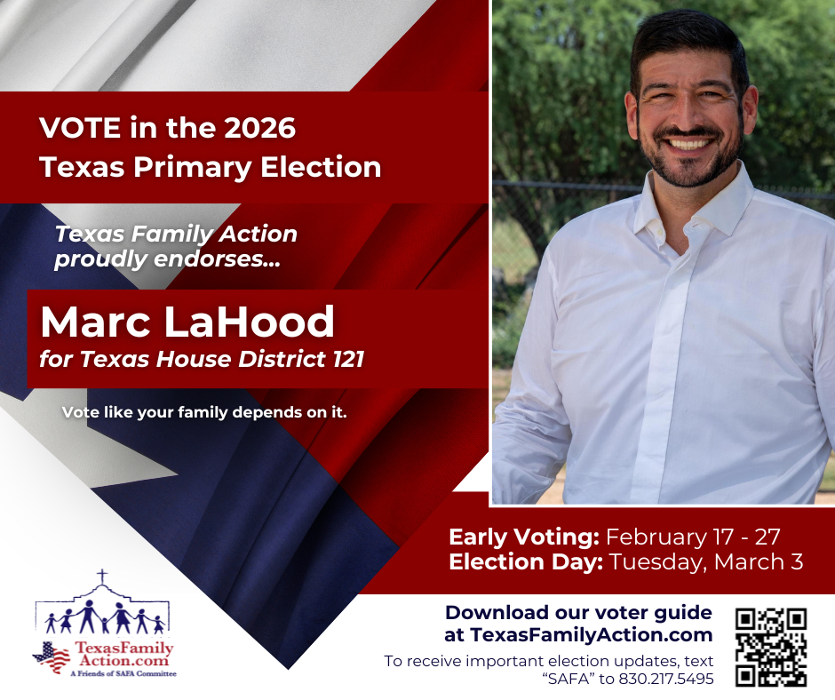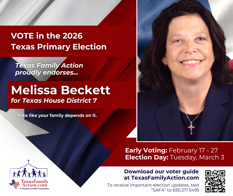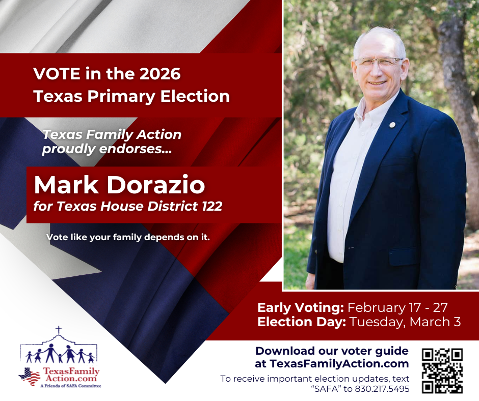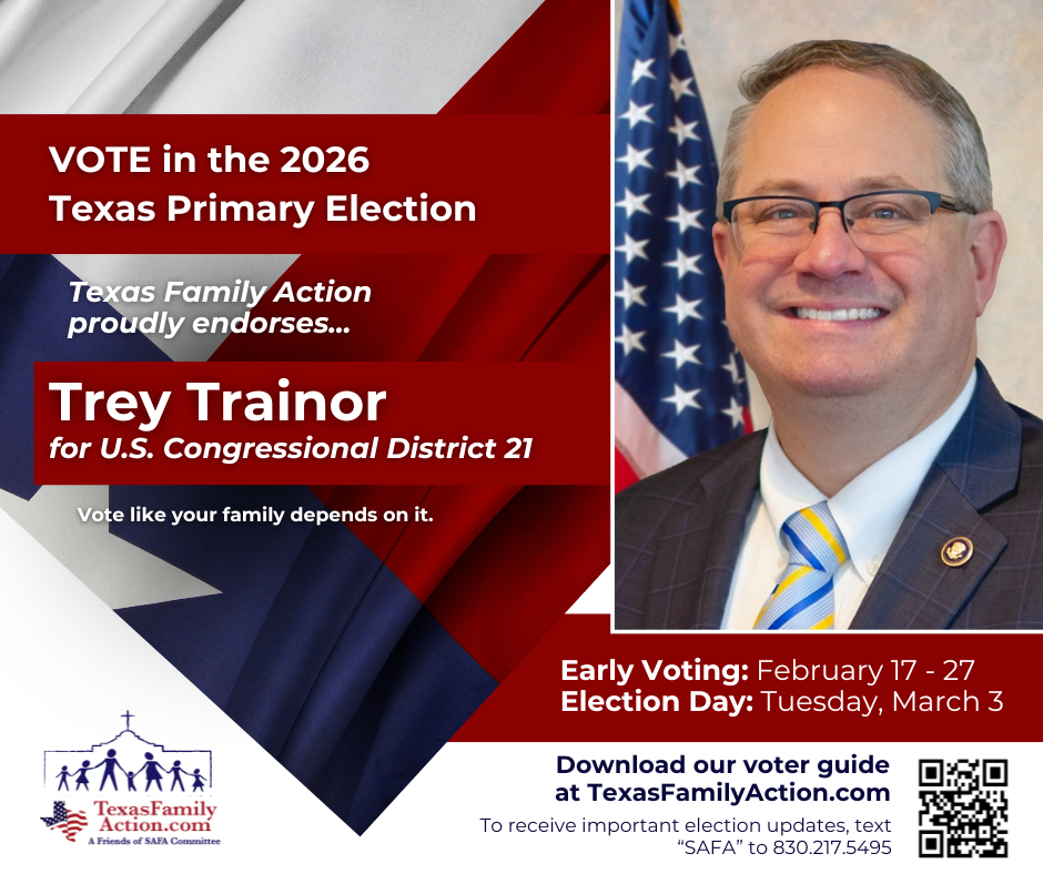 THE MISSION OF TEXAS FAMILY ACTIONTo educate, vette, and advocate for political candidates who courageously and consistently protect, defend, and promote the family so good and meaningful change can be made at the local, state, and federal level. Texas Family Action Proudly Endorses… Federal Race Endorsements State Race Endorsements Local Race Endorsements Download Our FREE Family Voter Guide Download the Family Voter Guide